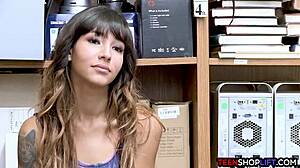 Security officer catches teen 18+ stealing at the mall and bends her over for doggystyle 😏. Hardcore action in the office!