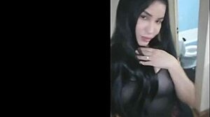 Hey, wanna see this Latina shemale get her face covered in cum?