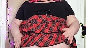 Hey, check this hairy bbw flashing her bare wet pussy lips under that skirt?