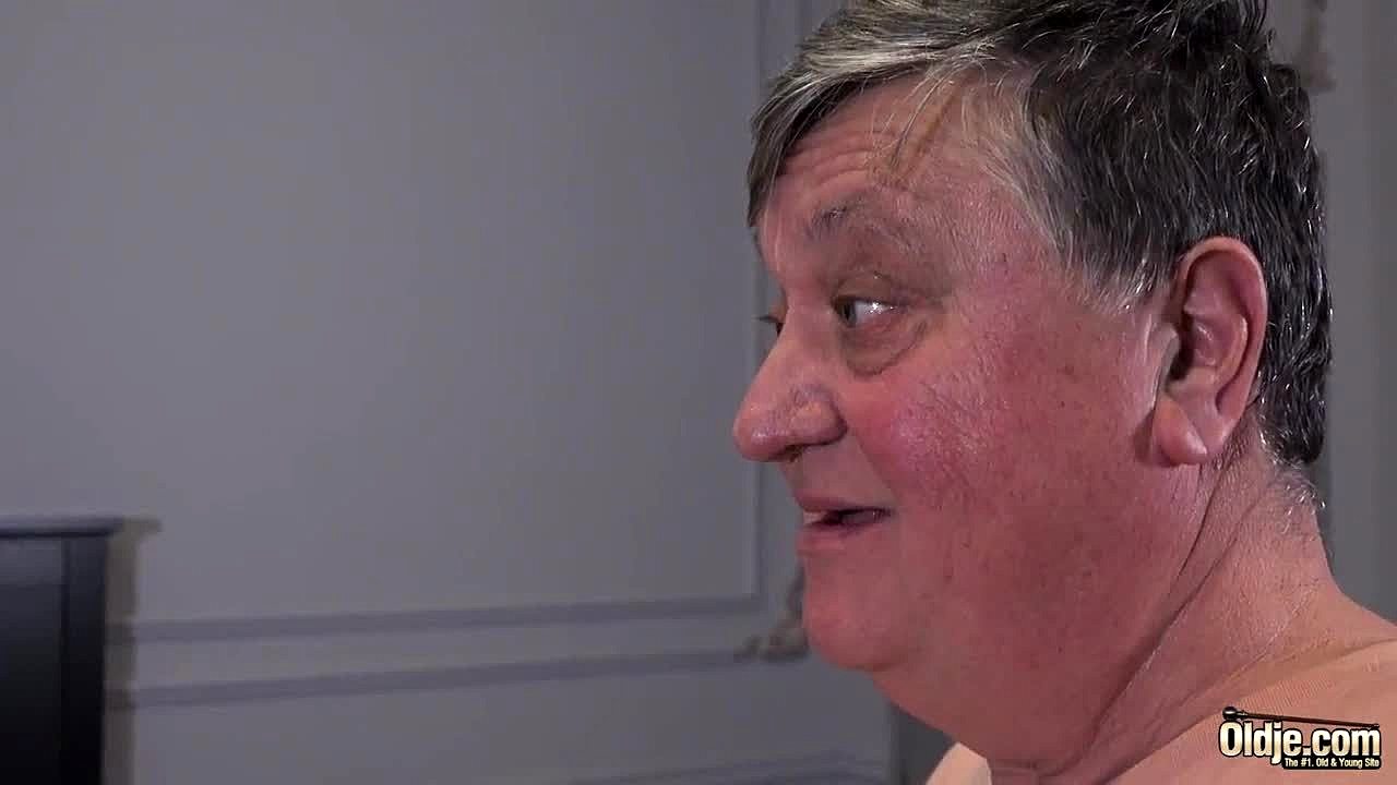 Horny old grandpa licks and satisfies cute brunette teen GF