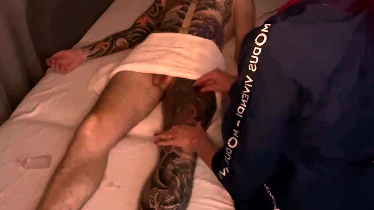 These two naughty teens share a huge dick in wet nuru massage