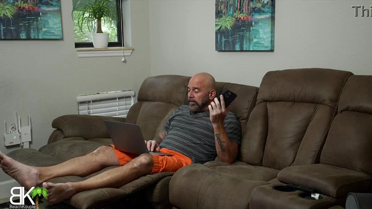 Stepmother is fascinated by masturbating porn and big cocks on tv she moans asking to fuck!